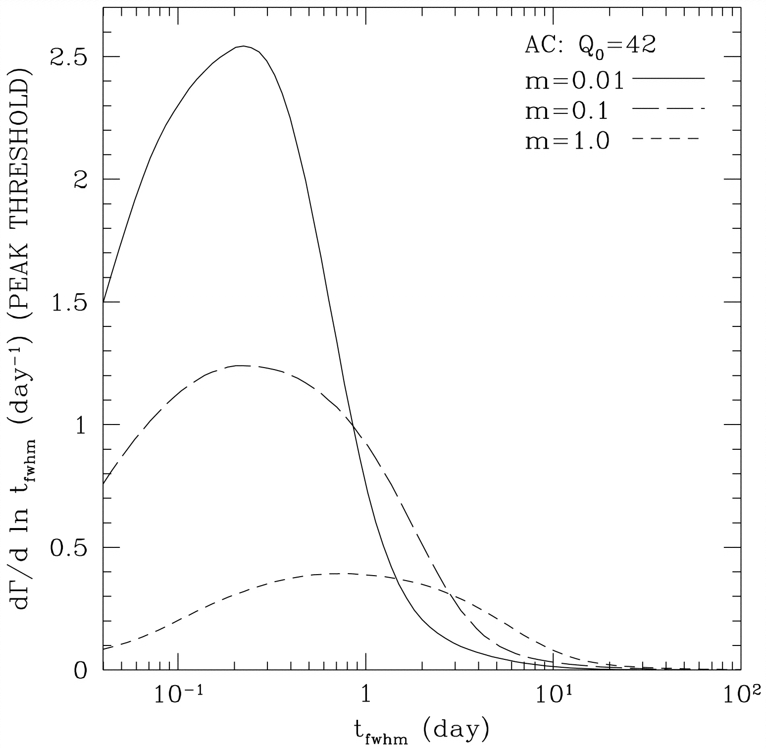 Pixel lensing rates for the peak threshold trigger on WFPC2, AC, and NGST. We have taken ﹩Q_{0}=7﹩. In the bottom right panel, we plot rates in the Advanced Camera with ﹩Q_{0}=42﹩.