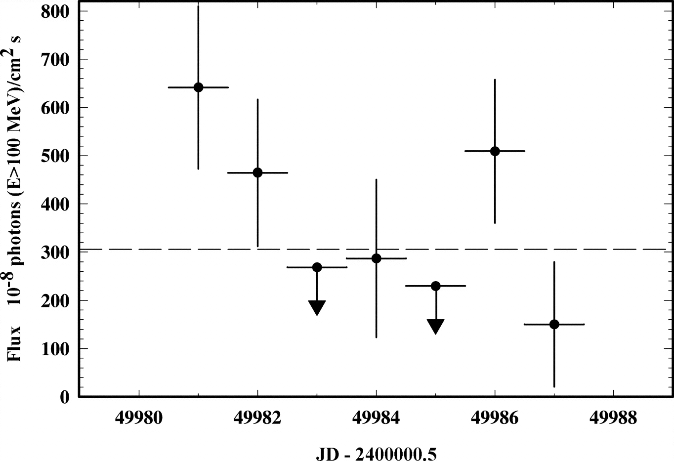 Light curve of 3EG J1746−2851 during VP 429.0. The points represent 24 hr integration times. The variability index ﹩V=3.0﹩.