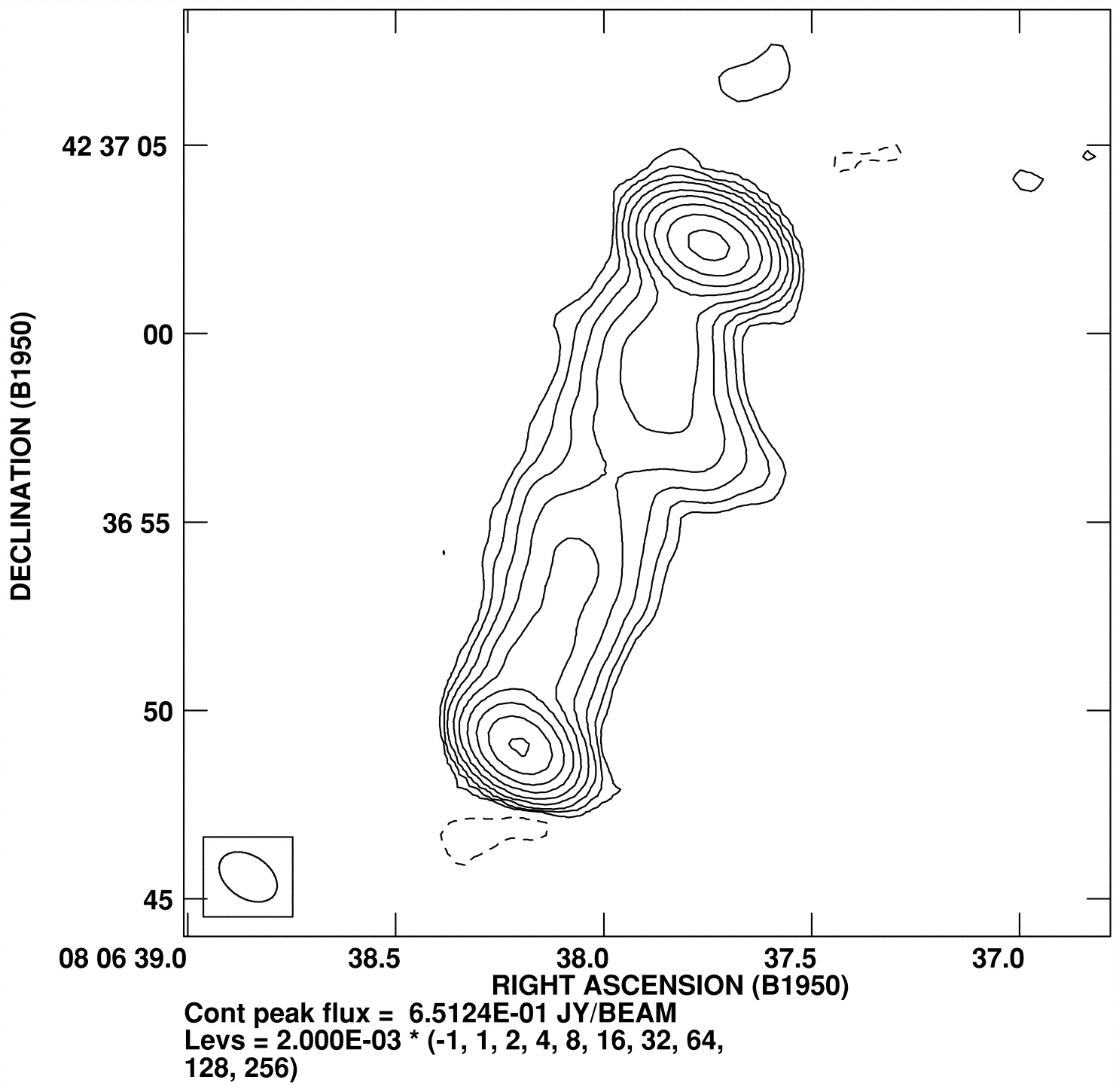 Radio maps of 3C 194 from archive data (see Table 1) in (a) L band and (b) C band
