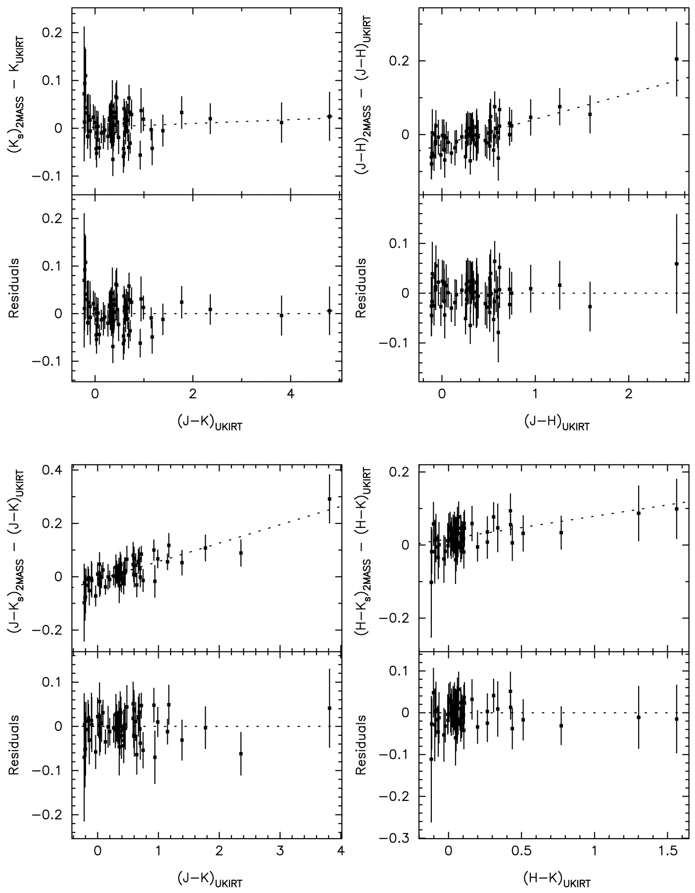 Same as Fig. 4, except for UKIRT photometric system. UKIRT standard‐star photometry is from Hawarden et al. (2001); also see Casali & Hawarden (1992).