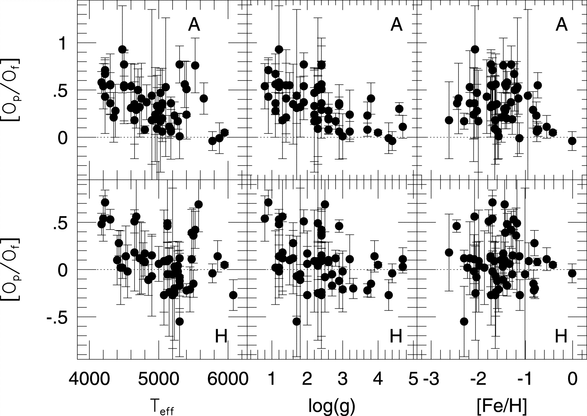 Difference in the oxygen abundances as a function of stellar parameters for the two temperature scales