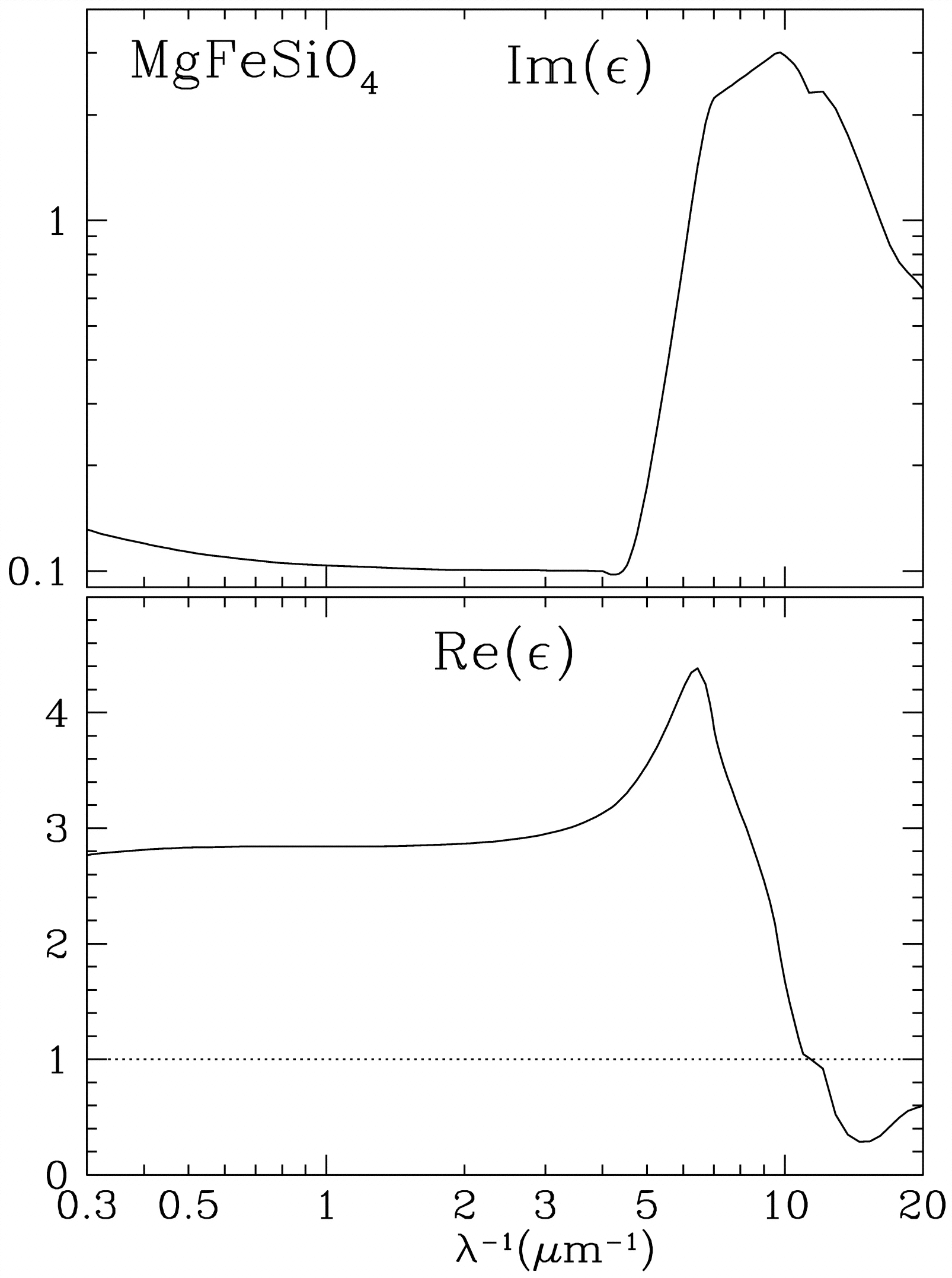 Dielectric function adopted for amorphous MgFeSiO4 (Draine 2003b)