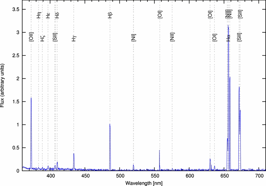 Spectrum of the core of HH 222 obtained with FORS2 on the VLT.