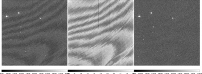 The left panel shows a randomly selected y-band reduced image, where fringe patterns can be clearly seen. The middle panel presents the “fringe-bias” image produced from the fringez package (for more details, see M. S. Medford et al. 2021), and the right panel demonstrated the fringe patterns have been successfully removed. Specifically, we ran the fringez-generate on a subset of images without any bright pixels (>35,000 ADU; to avoid artifacts from bright stars). The generated fringe models, separately in the zy-band, were then applied to all of the reduced images using fringez-clean.