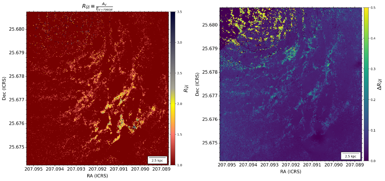 Ratio of total to selective attenuation (﹩{R}_{\widetilde{VI}}﹩; left) map approximated via Monte Carlo resampling of n = 1000 iterations and its resulting standard error of the distribution mean (right). ﹩{R}_{\widetilde{VI}}﹩ is simply calculated from Equation (1).