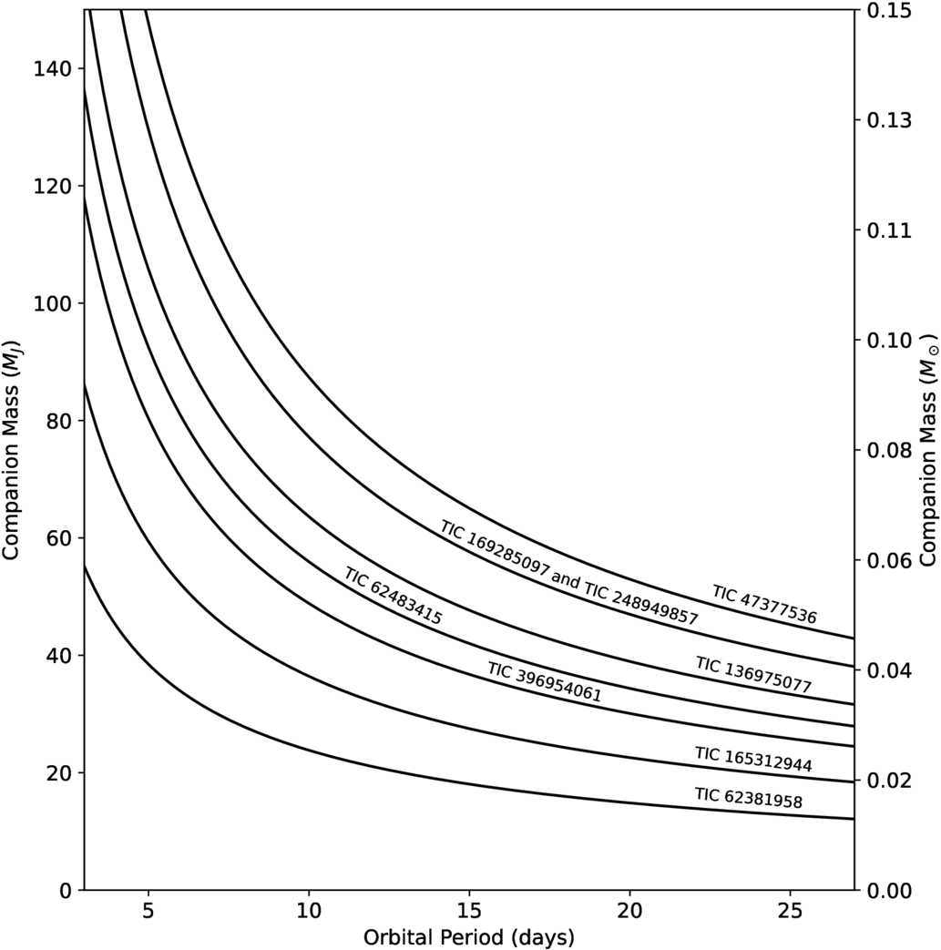 Upper companion mass limits for i = 90° for each target using all available TESS sectors in the analysis.