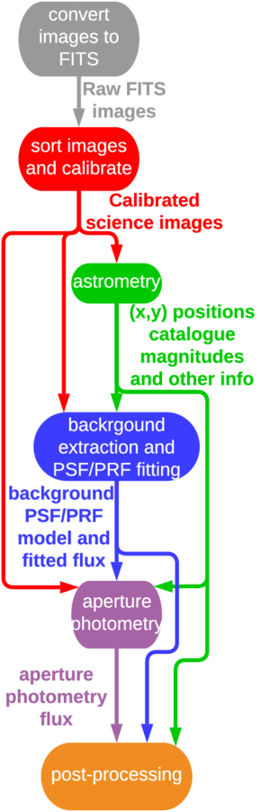 The image processing pipeline steps and their products. The arrows indicate the products of each step and where they will be used.