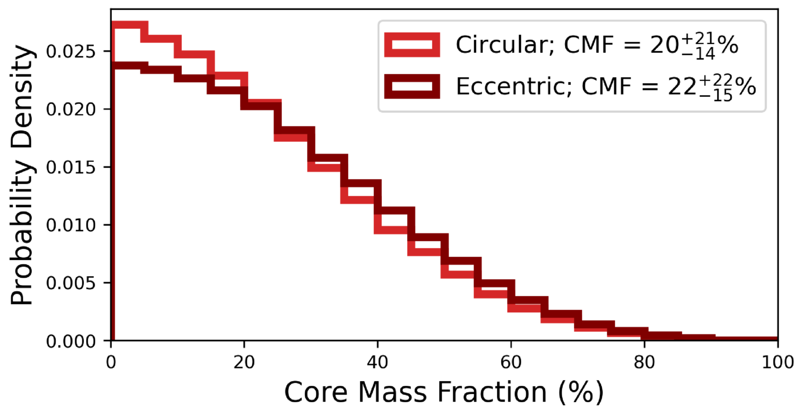 The inferred CMF of both our circular-orbit and eccentric-orbit GJ 12 b models using the L. Zeng et al. (2019) models, assuming the planet lacks both water and an atmosphere.