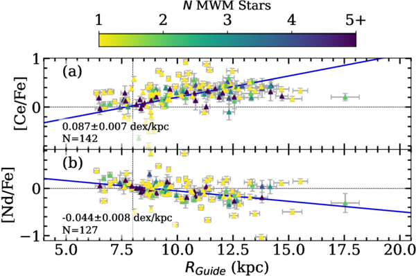 Same as Figure 4 but for the neutron-capture elements cerium (Ce) and neodymium (Nd).