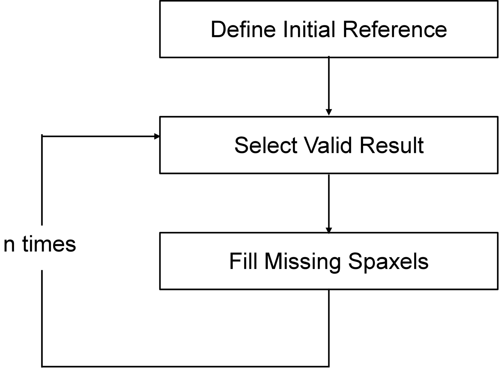 Flowchart of the selection method. The selection process consists of four steps: (1) identifying the reference region; (2) selecting valid results; (3) filling in regions without reference values; and (4) repeating steps (2) and (3) until the set number of iterations is reached. For further details, refer to Section 3.2.