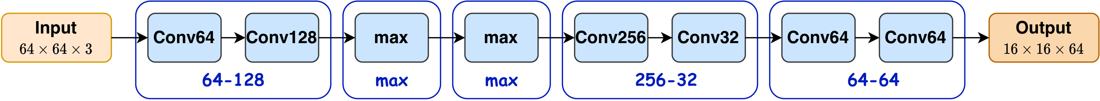Example diagram of an individual network structure, where each number denotes the number of convolutional kernels, two consecutive numbers form a convolutional component, and “max” represents a max pooling layer.