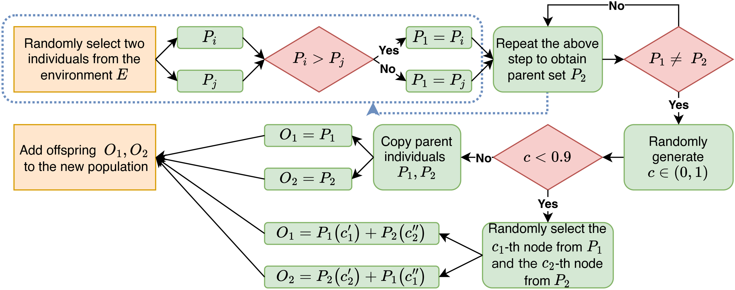 Flowchart of the offspring generation process in the GAMMA-CNN framework, illustrating the crossover mechanism used to produce new individuals.