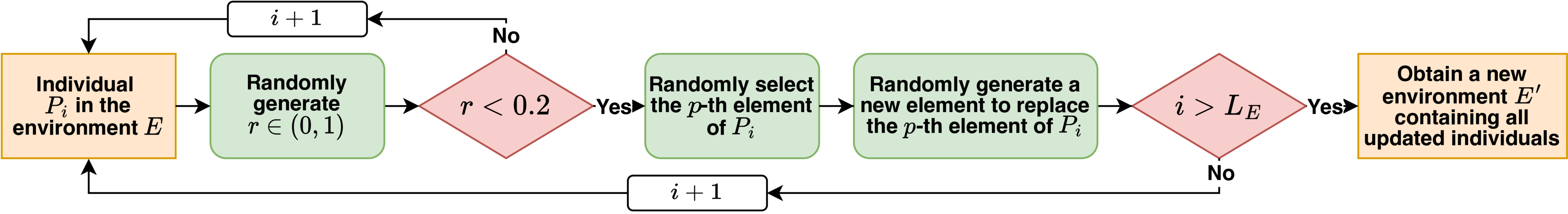Flowchart of the mutation process in the GAMMA-CNN framework, illustrating how random alterations are applied to individuals to maintain population diversity.