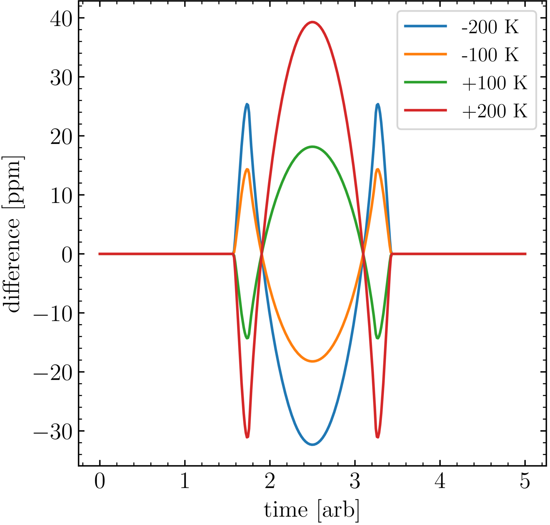 Similar to Figure 5, but now showing the difference between transits across stars with varying stellar temperature.