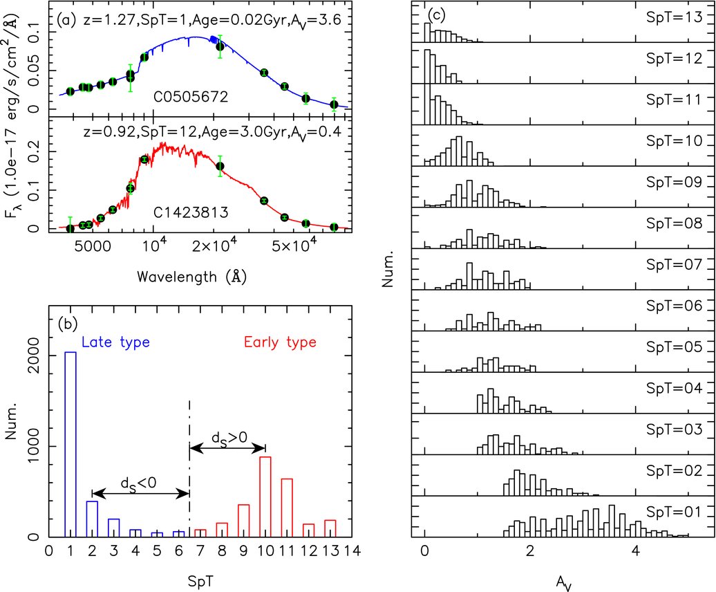 V band for each EROs are also shown. (b) Distribution of spectral type (SpT) for EROs in the COSMOS field.