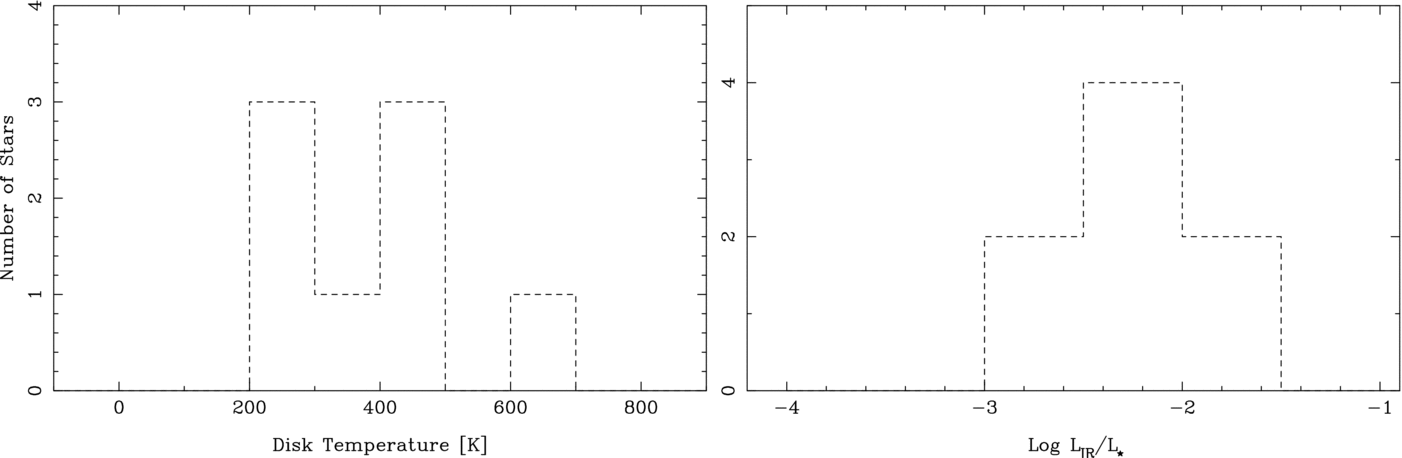 right-hand panel) for sources with excesses at two or more wavelengths.