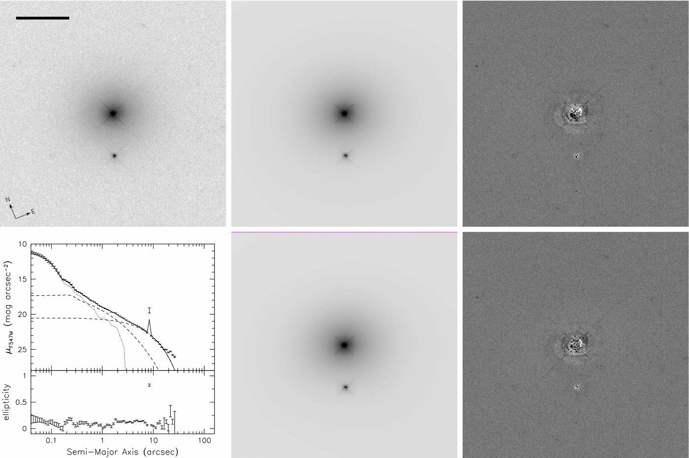 2, but for Mrk 290. The small jump in surface brightness at 9'' is due to the bright field star in the image.