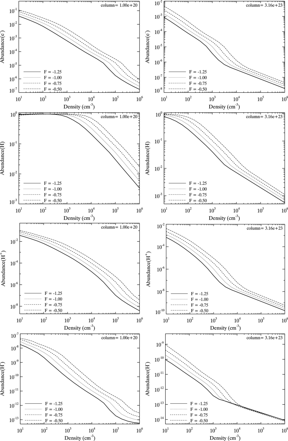 2 +, CO and temperature for column densities of 10