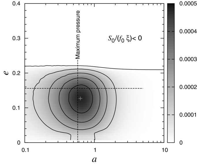 0ξ) in the space of orbital elements. Horizontal dashed line corresponds to the mean eccentricity