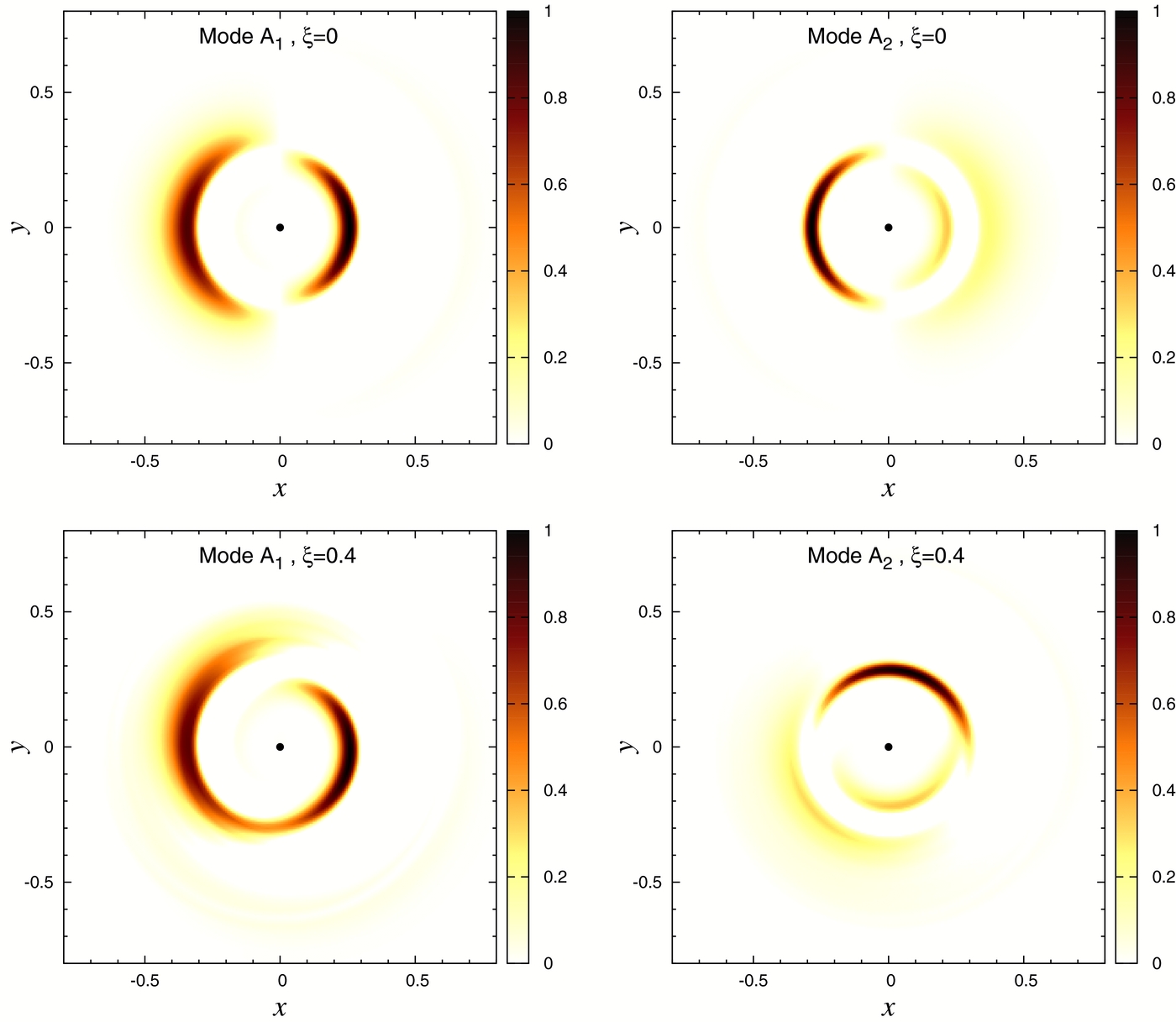 1 is a trailing spiral. The inner and outer wave packets of unstable mode A