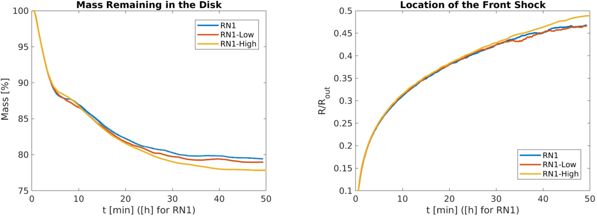 Same as Figure 7, but for the three variations on resolution of model RN1.
