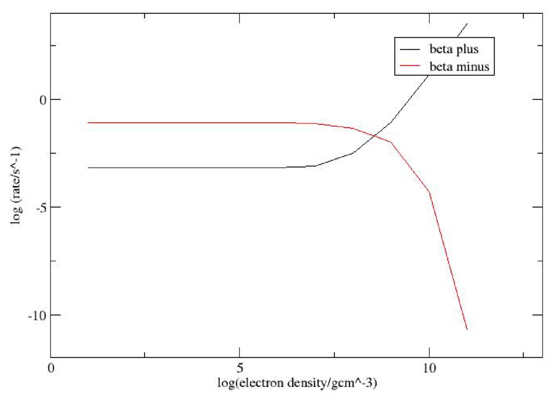 Average beta decay rate as a function of electron density at a temperature of 10 GK.