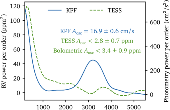 Power per radial order spectra computed from both KPF RV data and TESS photometric data.