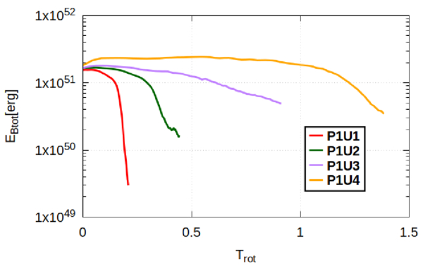 Total magnetic energy ﹩{E}_{{B}_{{\rm{tot}}}}﹩ vs. Trot.