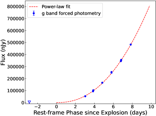 Power-law fit to the early g-band light curve. The fitting procedure and results are described in Section 3.1.
