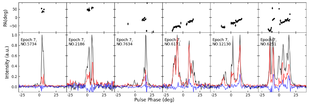 Polarization pulse profiles and PA of six single pulses from RRAT J1541+4703.