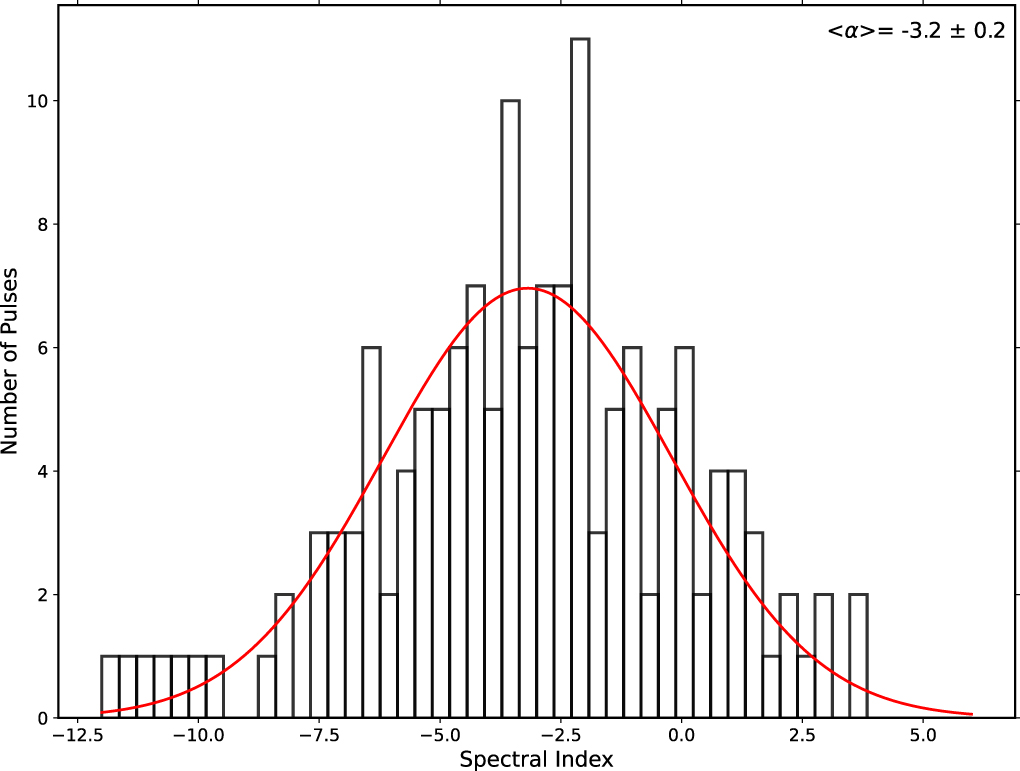 The distribution of 152 single-pulse spectral indices for RRAT J0139+3336.