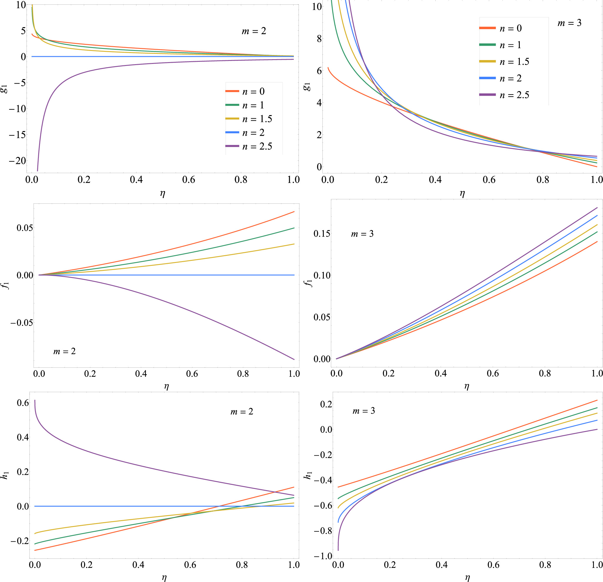 Analogous to Figure 2, but here we are plotting the corrections to the FS density g 1, velocity f 1, and pressure h 1.
