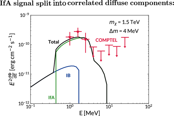 Similar to the Figure 7 but explicitly showing internal bremsstrahlung (IB, blue line) and in-flight annihilation contributions (IfA, green line).