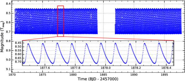 Light curve of BE Lyn from TESS Sector 21. The lower panel shows a 1 day zoom for clarity.