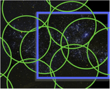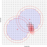 Cartoon to illustrate the tessellation and the area calculation. The grid represents the tessellation of 0.°1-size bins along Galactic latitude and longitude, although in the actual grid the bin centers are not exactly aligned in longitude, because in order to keep the bin size constant, fewer bins are needed to cover a 360° parallel circle at high Galactic latitudes than at low latitudes. The red “plus” is the field center. The red dashed circle represents a GALEX field (≈1.°2 diameter) and the solid circle represents the 1° inner portion from which sources of GUVcat_AIS_050 are retained. The bins whose centers (dots) are inside the red solid circle are counted for the total area (shaded bins). Bins not entirely included in the circle are missed if the bin center is outside the circle, whereas the entire bin area is included if the bin center falls inside the circle. Statistically, the lack or excess of area from edge bins compensate each other. The error in the result is discussed in Section 4.