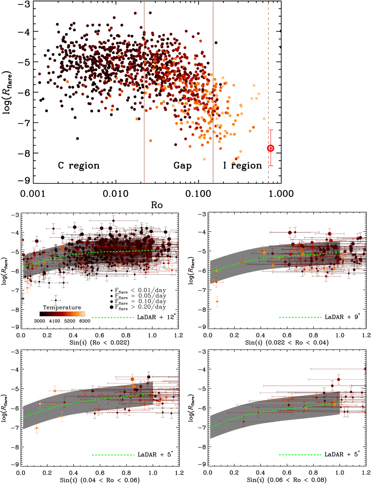 Top panel: same as Figure 1, but for the flare catalog of B. Seli et al. (2025). Middle and bottom panels: same as Figure 3, but for the flare catalog of B. Seli et al. (2025).