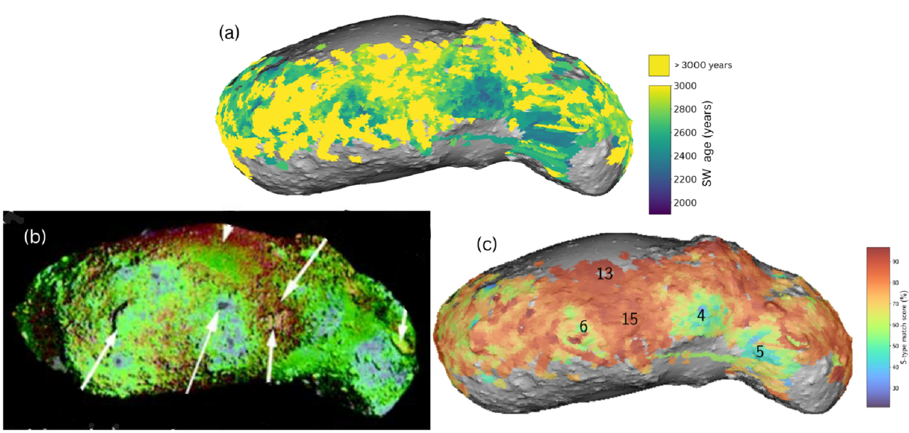 SW age of Itokawa and other studies. (a) This study, (b) D. Korda et al. (2023), and (c) M. Ishiguro et al. (2007)